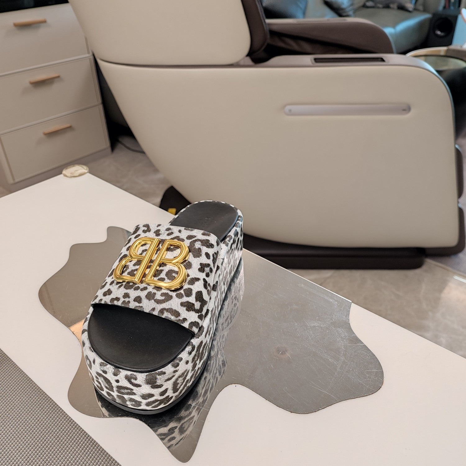 Balenciaga Leopard Print Platform Slides with Bold Logo