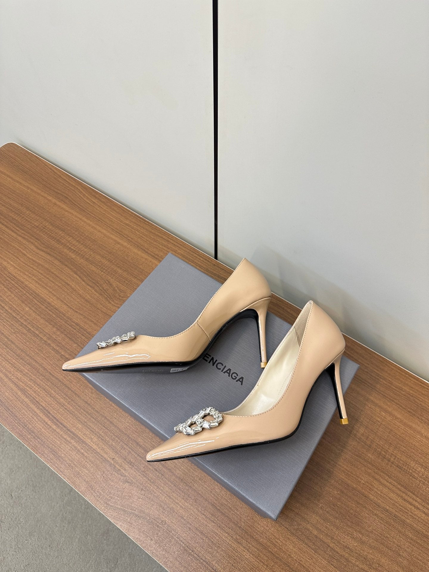 Step into sophistication with these stunning stiletto heels, crafted from luxurious patent leather. The pointed toe design offers a timeless silhouette, while the elegant rhinestone detailing adds a touch of sparkle to every stride. Perfect for elevating any ensemble, these heels promise both style and comfort, making them an exquisite choice for daily elegance.