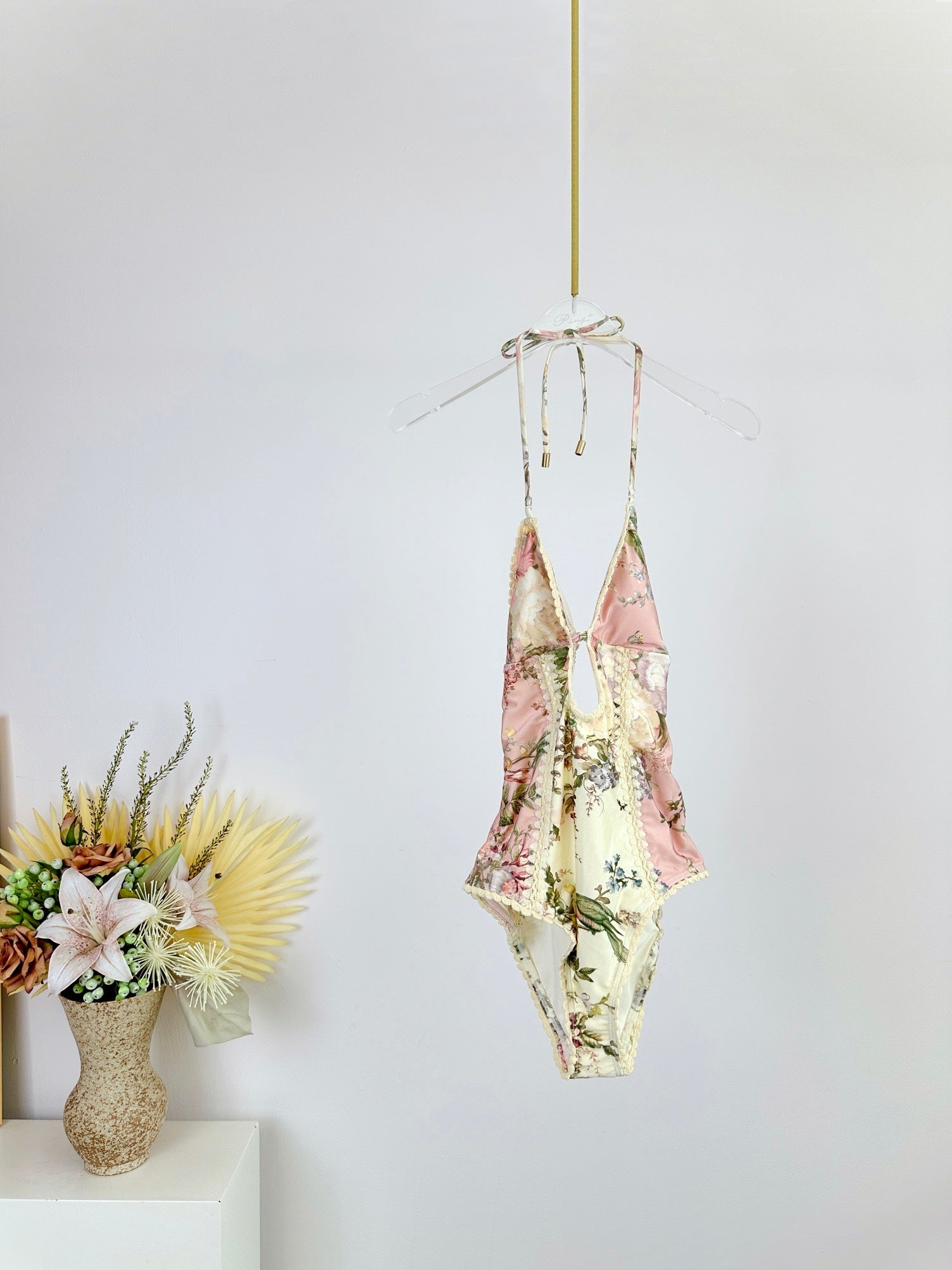 The keyhole crochet 1pc in spliced from our summer swim 2025 collection. A halter neck one piece featuring a deep V-Neck and shell crochet edging throughout.