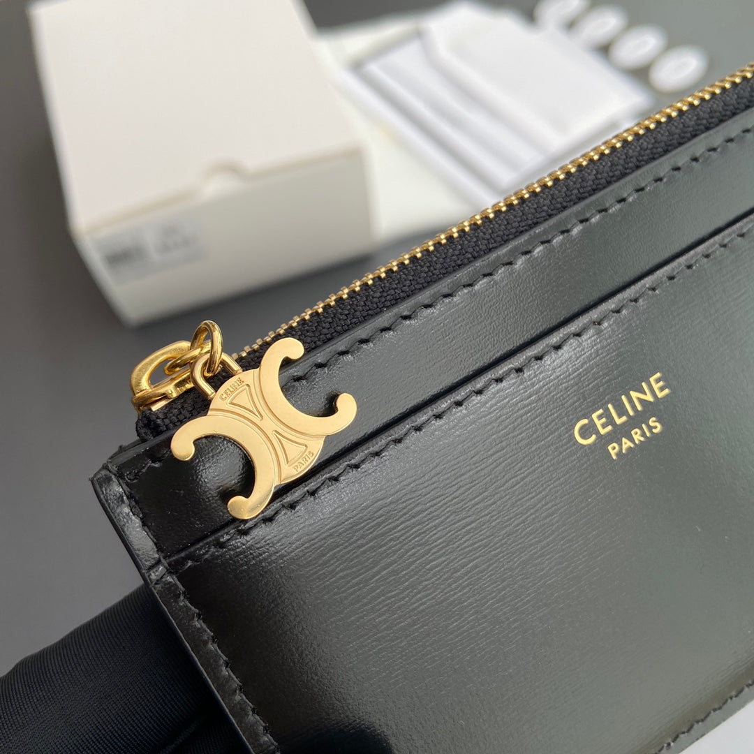Celine Zipped Card Holder Triomphe Charms in Grained Calfskin