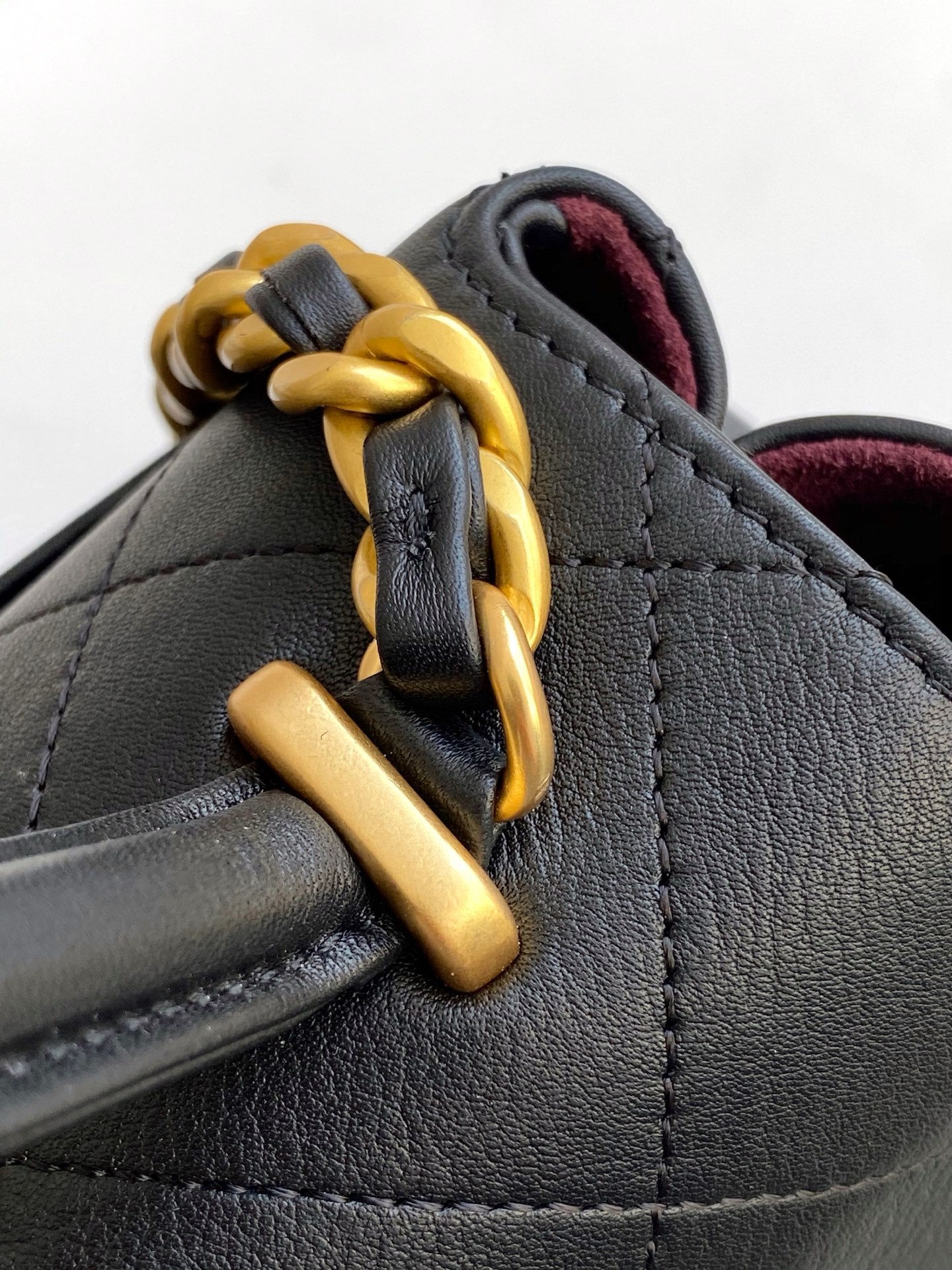 Step into sophistication with this exquisite shoulder bag, crafted from the softest lambskin leather. Its elegant chain strap gracefully complements your daily adventures, offering both style and comfort with a generous 31.5" length. A true classic that whispers luxury, inviting you to carry your essentials with poise and grace.