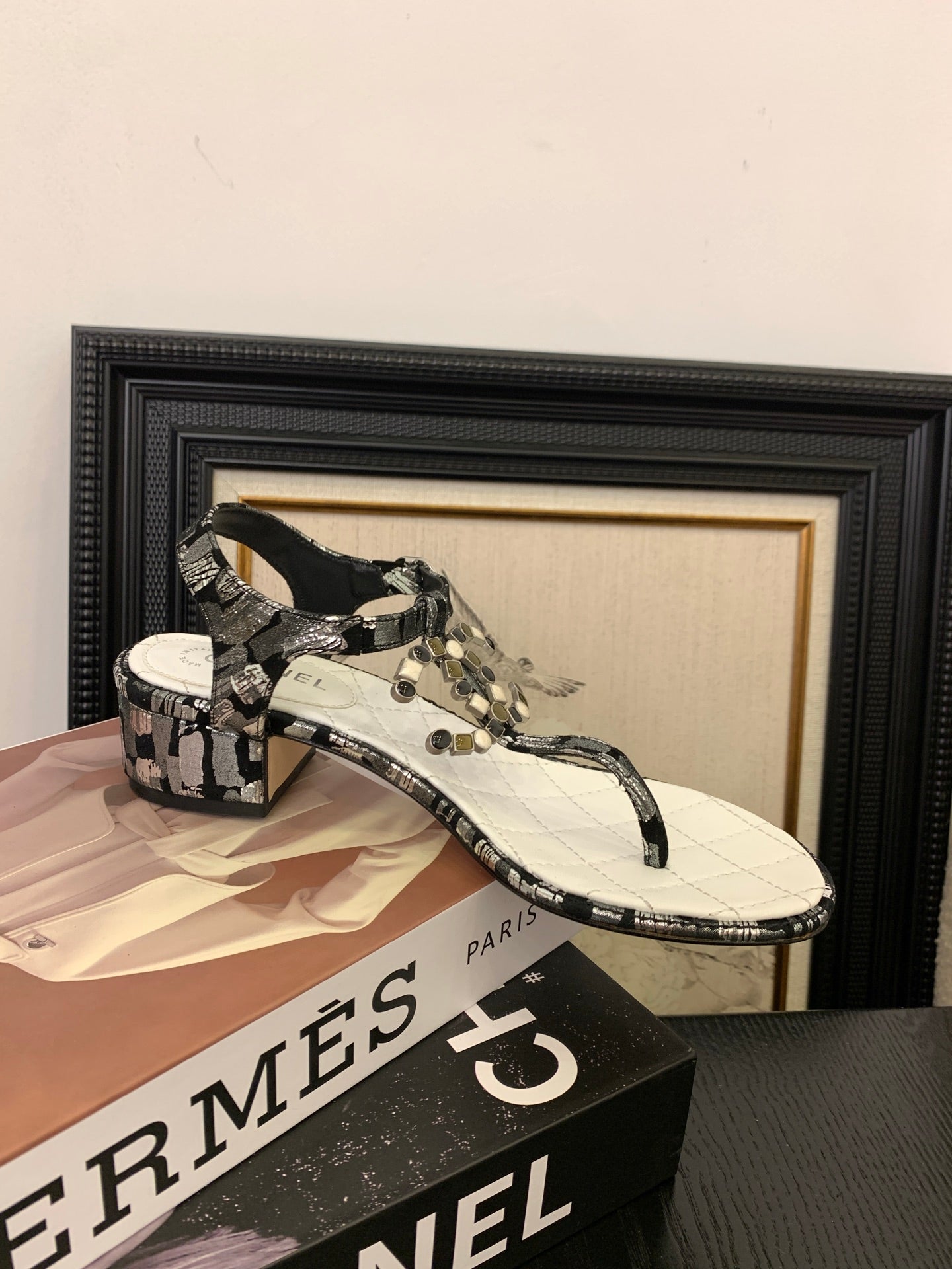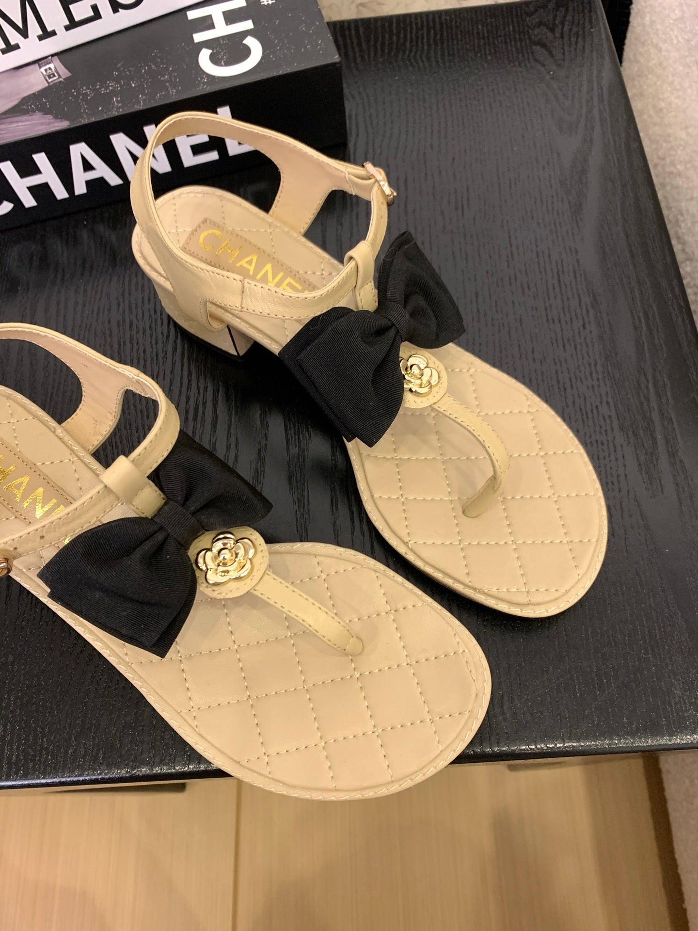 Step into effortless sophistication with these exquisitely crafted thong sandals. Made from supple leather and featuring Chanel's signature quilted design, they promise both style and comfort for your daily adventures. Perfect for embracing the art of casual luxury.