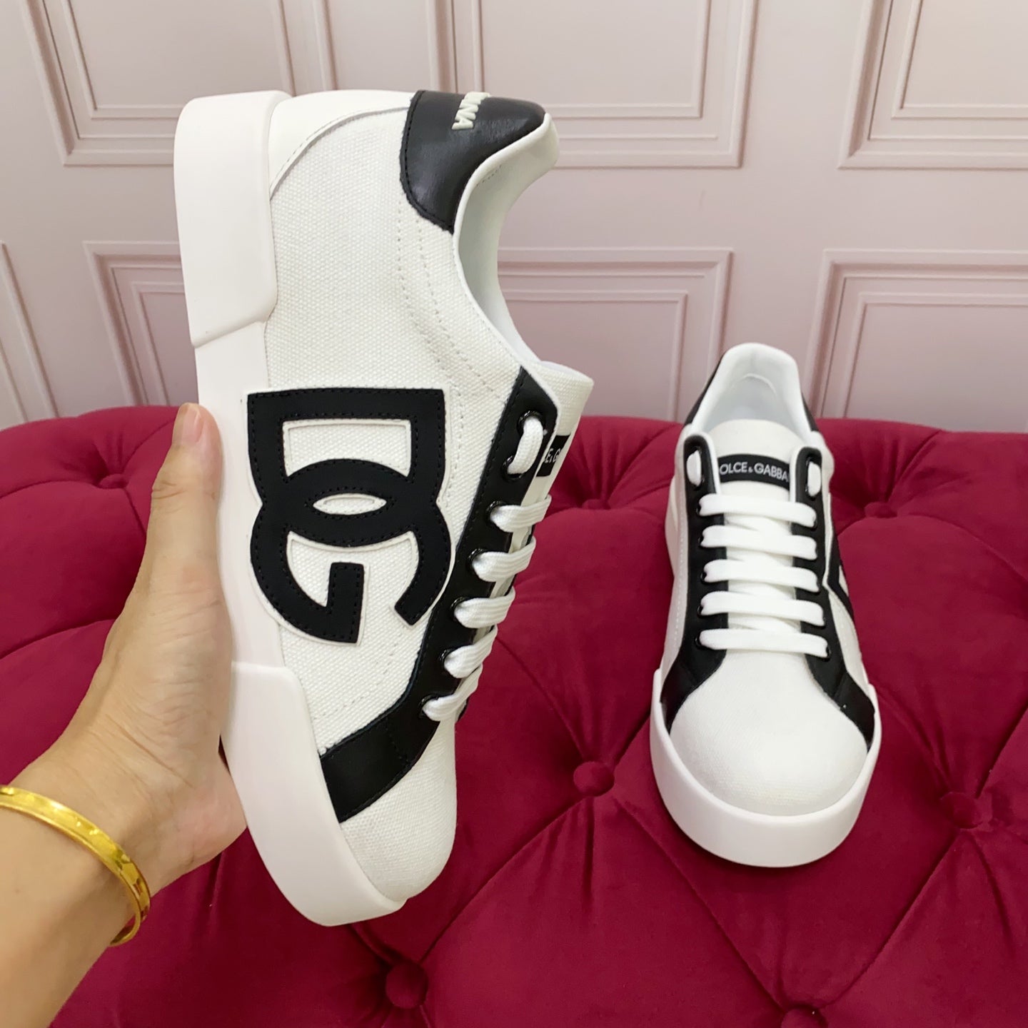 Dolce & Gabbana Calfskin Nappa Portofino Sneakers, a perfect fusion of luxurious craftsmanship and urban edge. Made in Italy from ultra-soft calfskin nappa leather, these iconic low-top sneakers reflect Dolce & Gabbana’s signature blend of bold design.