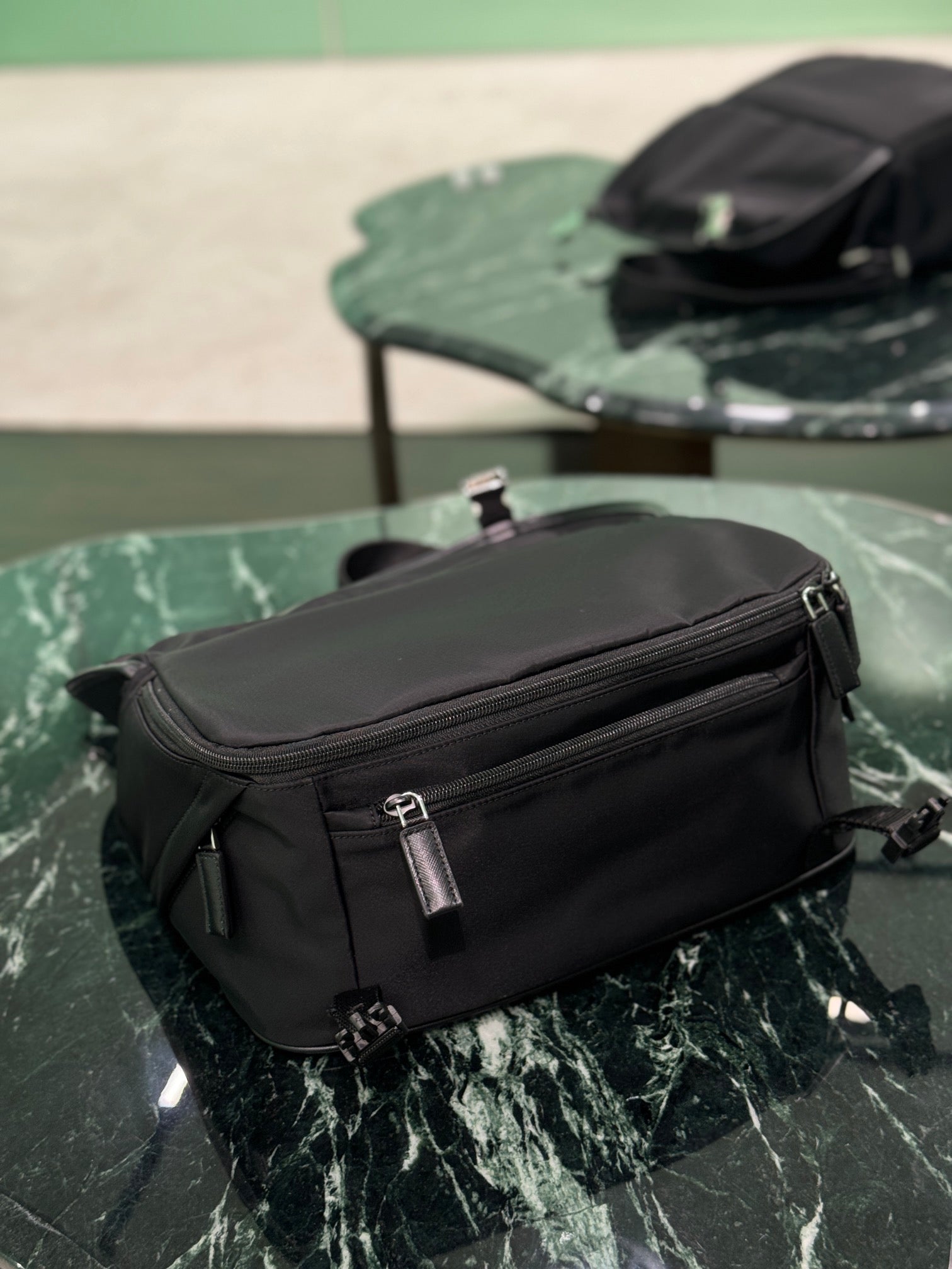 Discover sophistication with the Elegant Voyager Shoulder Bag, a luxurious blend of style and sustainability. Crafted from sumptuous Re-Nylon, this bag features an adjustable leather strap and exquisite metal hardware, radiating timeless elegance. Its thoughtfully designed interior offers ample storage with a zipper pocket, while the iconic enameled triangle logo adds a touch of distinguished flair.