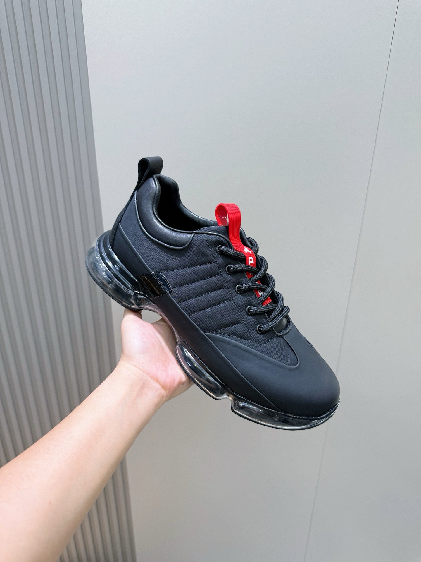 Discover the allure of Italian craftsmanship with these pre-owned Prada Linea Rossa sneakers, exquisitely crafted in a harmonious blend of gray nylon and leather. Designed in Italy for the discerning gentleman, these Size 9.5 shoes promise both style and sophistication. Elevate your ensemble with a touch of luxury that transcends time.
